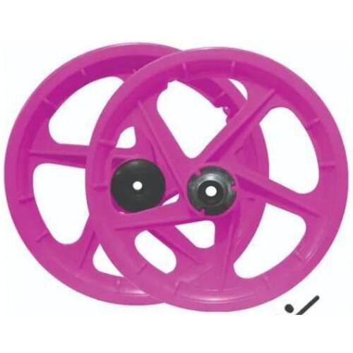 Par de aros 16 Nylon. Completo com todos o kit de montagem incluindo eixos sem os pneus . Cor Rosa. Ficha técnica - Material: Metal - Fonte do produto: Roda Para bike infantil - Plataformas excluídas: Desktop - Diâmetro: aro 16 - Unidades por embalagem: 2 - Quantidade de parafusos de afinação: 2 Ean: 78931789317878
