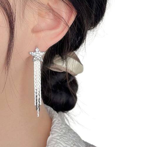 Compre Agora Par de Brincos Feminino Luxo Festas Franja Estrela Prata e brilhe com elegância e estilo em todas as suas ocasiões especiais!