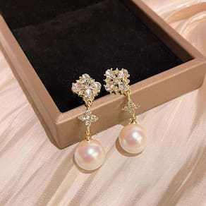 Compre Agora Par de Brincos Feminino Luxo Pérola Branco Strass Casamento e brilhe com sofisticação e charme em sua ocasião especial!