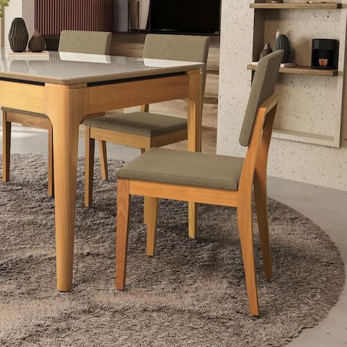 Elegante e robusta, a Cadeira Dora da Linha Sala de Jantar Premium da Kappesberg é perfeita para compor ambientes modernos e cheios de estilo, garantindo conforto e beleza. Produzida em estrutura resistente, em madeira de eucalipto, garantindo mais durabilidade, o assento e encosto são desmontados, e suportando até 120kg, combina com todos os momentos. Com medidas de 89cm de altura, sendo 47,5cm a altura do assento, 44cm de largura e 53cm de profundidade, para mais comodidade, ela possui assento e encosto estofados com espumas certificadas e recobertos com tecido boucle fendi, garantindo um toque suave e gostoso, deixando sua sala de jantar ainda mais completa. O destaque fica para o detalhe da estrutura atrás do encosto, que além de um acabamento lindo, facilita o manuseio e deixa seu espaço ainda mais completo.