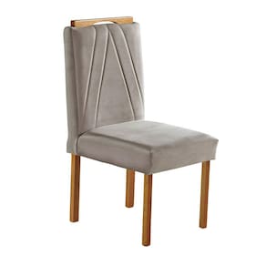 Informações Técnicas Cadeira: Marca: Móveis Mundial Modelo: Safira Material da Estrutura: Madeira Maciça de Eucaliptus Tratado, 100 Imunizado e Seco em Estufa. Assento: Espuma D26 Soft Real. Encosto: Espuma D18 Soft Real. Aplique no Encosto-Puxador-: Sim. Assento/Pés: Reforçado. Tecido Cadeira: Veludo. Cor do Tecido: Bege. Embalagem Cadeiras: Caixa de Papelão -Duas cadeiras montadas por caixa-.