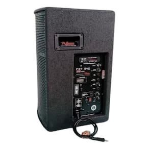 Montagem Falante 12 Tweeter Corneta Alças laterais Conexão IN / OUT Tela de aço margeada com pintura epóxi Divisor de frequência Acabamento: pintura texturizada preta Gabinete em madeira naval imunizada 2 x 1 : pode atuar no modo frontal ou monitor Pés de borracha