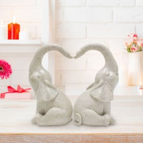 Material: resina Tamanho: 18,5* 16,5* 11,5 cm Peso: 500 g ['Design em forma de coração: com dois elefantes com trombas levantadas formando um coração, esta figura encantadora simboliza unidade e adiciona calor a qualquer jardim ou ambiente interno. ', 'Artesanato em resina: feita de resina durável, a estátua é resistente às intempéries e adequada para pátios externos, gramados e telas internas sem desbotar ou rachar. ', 'Acabamento neutro elegante: a textura macia em forma de pedra combina facilmente com o ambiente natural, aprimorando os ornamentos paisagísticos modernos e rústicos. ', 'Estáveis e decorativas: com uma base equilibrada, essas esculturas podem ser colocadas em mesas, caminhos e áreas de entrada, criando um ponto focal atraente. ', 'Versatile Scene Accent: perfeito para decoração de jardins, arranjos de decoração de casa, vitrines de varanda ou paisagens temáticas, trazendo serenidade e detalhes artísticos.']