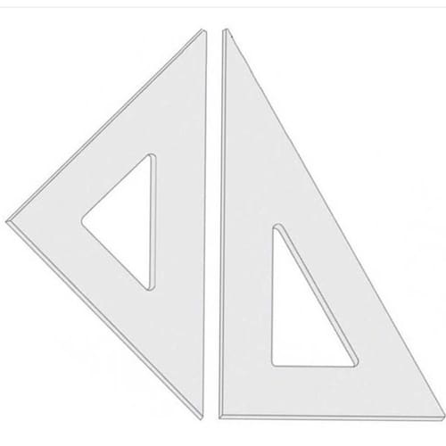Par de esquadros de 42 cmsem graduação e sem chanfro fabricado em acrilico cristal transparente naespessura de 2mm cortados a laser, garantindo um acabamento profissional, dequalidade e precisão na peça técnica.
