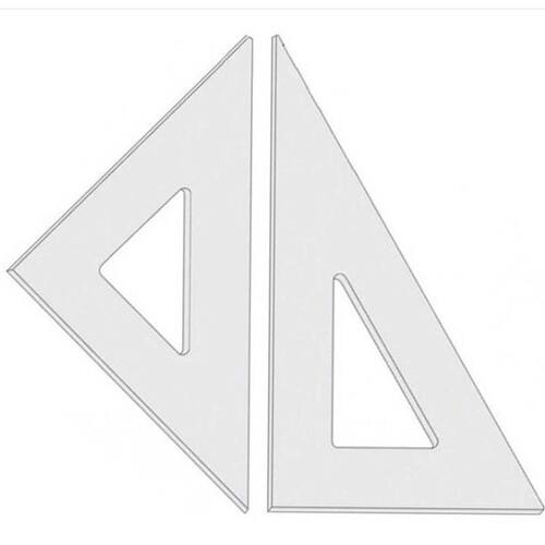 Par de esquadros de 32 cmsem graduação e sem chanfro fabricado em acrilico cristal transparente naespessura de 2mm cortados a laser, garantindo um acabamento profissional, dequalidade e precisão na peça técnica.