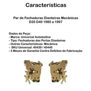 Dados da Peça: - Marca: Universal Automotive - Tipo: Fechaduras das Portas Dianteiras - Outras Características: Mecânica - SKU Universal: 40439 / 40440 - 3 Meses de Garantia Contra Defeitos de Fabricação