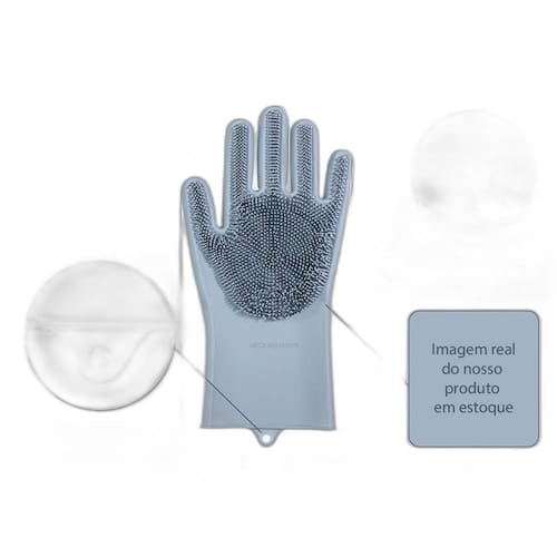 Luvas feitas de 100% silicone super resistente que não absorve a água, com cerdas macias na extensão da palma da mão para facilitar a limpeza pesada ou tarefas mais simples.