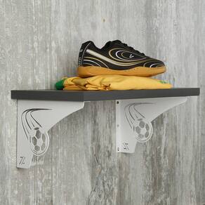Par de Mão Francesa Aço Branca Decorativa 20cm Futebol Bola Rápida para Prateleira Zarg.