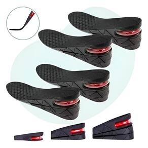Palmilha Salto Interno Maior 7 Cm Aumento De Altura Descrição Palmilha com ajuste de altura, podendo ser encaixada uma na outra, totalizando 7 cm de altura Especificações/Características do Produto - Cor: Preto - Material: PU de alta densidade (revestida em tecido) - Tamanho: 38 ao 41 (recortável) - Aumento: 3 camadas (3cm, 2cm e 2cm - Pode encaixar uma na outra, usando juntas) Item Incluso - 1 Par de palmilha (2 palmilhas)