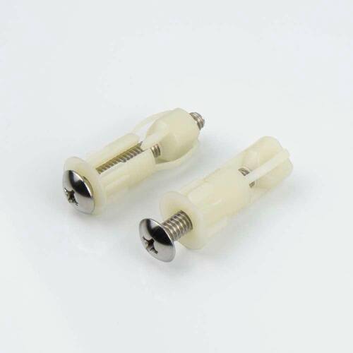 Par de Parafusos de Inox com Buchas Plásticas para assento sanitário. Compatível com a maioria das tampas de vasos do mercado. Serve para fixar o assento sanitário (tampa de vaso) na louça.