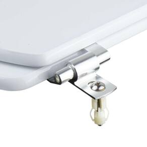 Para a instalação, encaixe os parafusos no assento sanitário e rosqueie as buchas plásticas na parte de baixo do parafuso. Então posicione o assento sanitário sobre o vaso, e encaixe os parafusos e buchas no buraco do vaso. Aperte com uma chave phillips no sentido horário para garantir a fixação adequada.