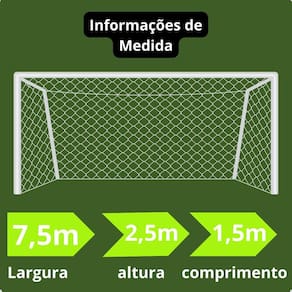 CARACTERÍSTICAS Conteúdo: 1 par de redes. Material: Seda, 100% virgem e possui tratamento Anti-UV, prolongando a durabilidade da rede em diversas condições Espessura do Fio: 6, para maior resistência. Design Colméia: Proporciona estabilidade durante o jogo. Resistência: Suporta os impactos da bola e as condições climáticas diversas. Versatilidade: Adequada para uso em campos de futebol de diversos tamanhos. Fácil Instalação: Prática para montagem e desmontagem. Durabilidade: Construção robusta para garantir longa vida útil. Marca: Sports Mania - Reconhecida pela qualidade em produtos esportivos. Marca: Sports Mania