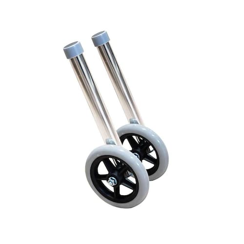 - Transforma um andador fixo em um andador móvel. - Par de rodas de uso universal, servindo em diversos modelos de andadores fixos/articulados. - Fácil manuseio, engate rápido e sistema mola-trave. - Maior durabilidade - Produto haste em alumínio anodizado, não risca e não perde o brilho. - Acompanham o ajuste de 08 níveis de regulagem de altura no Andador Dellamed
