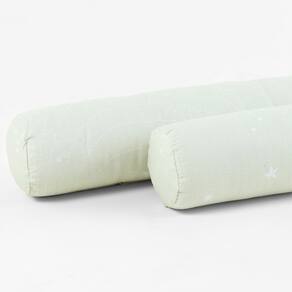 O Par de Rolo Cabeceira - Universo é feito em tecido 100% algodão com recheio em poliéster. Sua superfície é acolhedora, leve e possui um toque macio. Ideal para manter o quartinho do seu bebê colorido e cheio de estímulos e seguro.