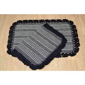 Par de Tapetes de Tear com Bico de Crochê - Preto