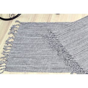 Jogo de tapetes fabricado em tear, na cor marrom mesclado, com franjas em duas laterais.