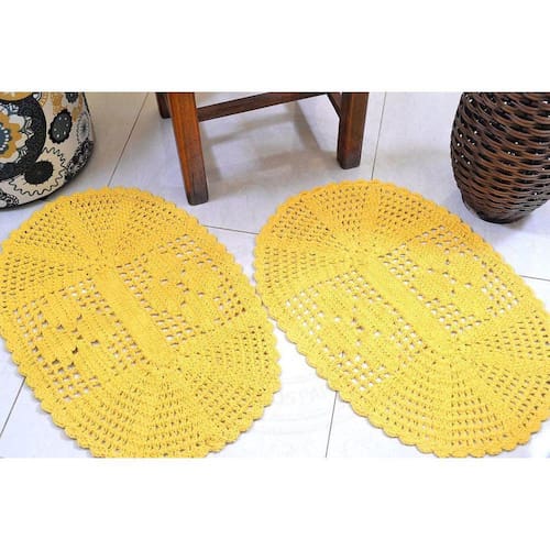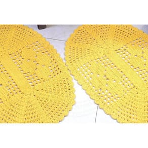 Par de Tapetes em Crochê Oval Liso - Amarelo