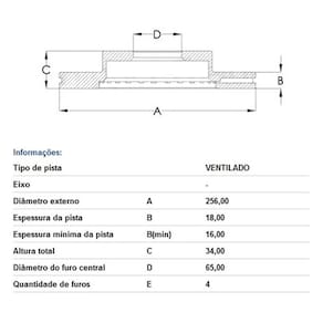 Espessura mínima da pista (min): 16,00