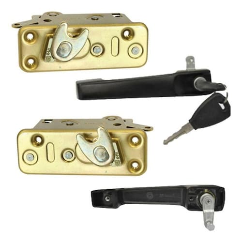 Par Fechadura Com Maçaneta Puxador Porta Bau Agrícola Trator - Un / 4 [f103] CONTEÚDO DA EMBALAGEM ------------------------------------------------- 01 Fechadura - Lado Esquerdo 01 FEchadura - Lado Direito 01 Maçaneta Externa (Puxador) - Lado Esquerdo 01 Maçaneta Externa (Puxador) - Lado Direito VEÍCULOS APLICÁVEIS