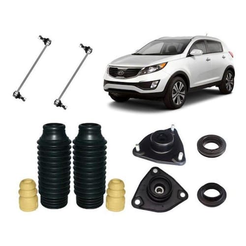 Par kit da suspensão dianteira kia sportage 2011 12 13 14 15 Par kit coxim rolamento batente coifa e bieleta do amortecedor dianteiro suspensão dianteira Conteúdo: 02 - coifa dianteira nova 02 - batente dianteiro novo 02 - coxim do amortecedor dianteiro novo 02 - rolamento do amortecedor dianteiro novo 02 - bieleta estabilizadora dianteira nova Garantia 06 meses de garantia Com nota fiscalPart Number: MLB1740974920