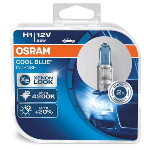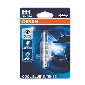 Descubra a COOL BLUE INTENSE - lâmpadas halógenas de alta tecnologia, quase no mesmo nível de uma lâmpada de xenônio Com a sua lâmpada branco-azulada brilhante de até 4.200 Kelvin, cujo feixe frio as faz parecer muito com uma lâmpada de xenônio, ela dá é mais financeiramente vantajosa para verdadeiros fans de design A lâmpada automotiva também fornece uma luz de alto contraste semelhante à luz do dia, o que é mais agradável aos olhos do que a luz das lâmpadas padrão. Em comparação com as lâmpadas halógenas padrão, a gama da OSRAM COOL BLUE INTENSE é até 20% mais brilhante. O design moderno com cúpula de prata (H4/ H7 / H11 / HB4) é ideal para uso em faróis de vidro transparente. Que dá ao seu carro aquele visual cheio de aparência elegante.
