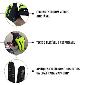 A palma da luva foi confeccionada em couro Amara respirável, muito leve, possui a impressão digital da palma da mão fabricada em silicone proporcionando um melhor controle e aderência às manoplas da moto e também pontas dos dedos sensíveis ao toque caso queira registrar alguns momento de seu esporte sem a necessidade de remover as luvas a cada vez que for fazer isso.