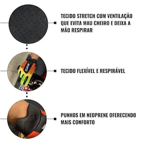 A palma da luva foi confeccionada em couro Amara respirável, muito leve, possui também pontas dos dedos sensíveis ao toque caso queira registrar alguns momentos de seu esporte sem a necessidade de remover as luvas a cada vez que for fazer isso.