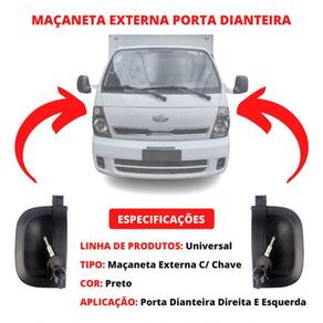 Par Maçaneta Dianteira Externa Dir/esq Kia Bongo Após 05 - Un / 2 [f103] CONTEÚDO DA EMBALAGEM ------------------------------------------------- - 01 Par De Maçanetas Externas Das Portas Dianteiras Direita E Esquerda (Com Chave) VEÍCULOS APLICÁVEIS