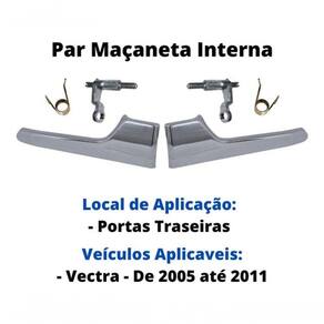 Par Maçaneta Gatilho Interno Porta Traseira Vectra 05 A 11 - Un / 2 [f103] Olá, sejam bem vindos ao melhor lugar para você comprar peças e acessórios para o seu veículo. _x005F_x005F_x005F_x005F_x005F_x005F_x005F_x000D_ Somos uma empresa especializada em E-COMMERCE e disponibilizamos um portfólio de mais de 30 mil itens no setor Automotivo. Dentro dos segmentos de ferragens automotivas (fechaduras, maçanetas, cilindros, trincos de quebra vento), máquinas do vidro elétricas e manuais, tampas automotivas, borrachas de vedação, linha de suspensão e direção, amortecedores mola a gás, acessórios automotivos e palhetas. _x005F_x005F_x005F_x005F_x005F_x005F_x005F_x000D_ Possuímos o claro propósito de facilitar a vida das pessoas, ofertando produtos que permitirão segurança, conforto e que agregam valores a vida de cada um. _x005F_x005F_x005F_x005F_x005F_x005F_x005F_x000D_ CONTEÚDO DA EMBALAGEM _x005F_x005F_x005F_x005F_x005F_x005F_x005F_x000D_ - 01 Maçaneta Interna Cromada - Lado Direito _x005F_x005F_x005F_x005F_x005F_x005F_x005F_x000D_ - 01 Maçaneta Interna Cromada - Lado Esquerdo _x005F_x005F_x005F_x005F_x005F_x005F_x005F_x000D_ _x005F_x005F_x005F_x005F_x005F_x005F_x005F_x000D_ APLICAÇÃO _x005F_x005F_x005F_x005F_x005F_x005F_x005F_x000D_ - Vectra - De 2005 até 2011 _x005F_x005F_x005F_x005F_x005F_x005F_x005F_x000D_ - Vectra GT - De 2005 até 2011 _x005F_x005F_x005F_x005F_x005F_x005F_x005F_x000D_