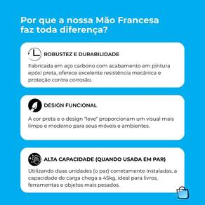 1 pacote contendo 1 par 2 unidades de mão francesa leve 50cm multivisão mfl50 preta
