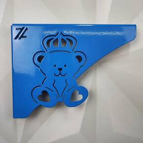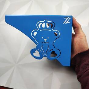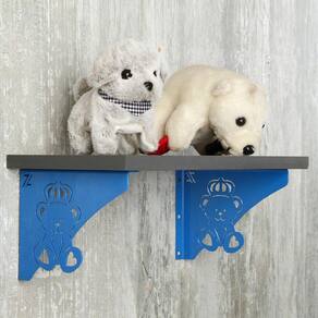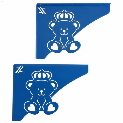 As mãos francesas decorativas de ursinho rei na cor azul da Zarg são fundamentais para compor as prateleiras. Os suportes águia, podem ser substituídos pelas mãos francesas ornamentadas com todo cuidado e qualidade que só nós proporcionamos. Estas mãos francesas para prateleiras têm 2mm de espessura, têm pintura epóxi premium e aguentam carga de até 20kg. A mão francesa decorativa dá um ar acolhedor em seu ambiente, aposte na qualidade e bom gosto para compor o quarto do seu pequeno. Marca: Zarg