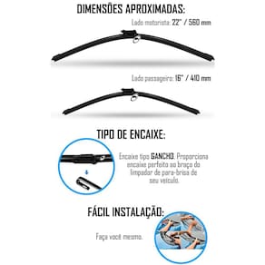 A palheta automotiva possui alta qualidade em plástico e borracha, garantindo durabilidade, resistência e visibilidade impecável. Fácil instalação com encaixe sob medida e haste maleável para limpeza uniforme do para-brisa. Conectores fixados por plugue de encaixe garantem firmeza durante o uso. Sua memória de curvatura adapta-se a cantos de vidros côncavos, proporcionando limpeza completa e eficaz. Efetue trocas periódicas de sua palheta para continuar dirigindo com confiança e encarando a chuva sem preocupações! As palhetas de para-brisa medem 22" e 16" polegadas.