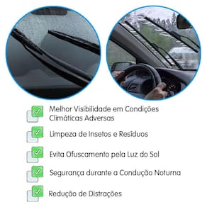 Alta qualidade em plástico e borracha, garantindo durabilidade, resistência e visibilidade impecável. Fácil instalação com encaixe sob medida e haste maleável para limpeza uniforme do para-brisa. Conectores fixados por plugue de encaixe garantem firmeza durante o uso. Sua memória de curvatura adapta-se a cantos de vidros côncavos, proporcionando limpeza completa e eficaz.