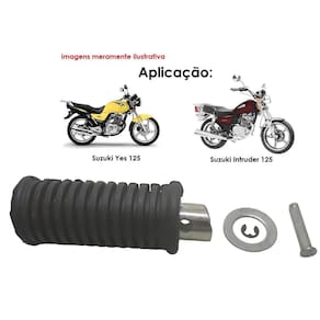 Pedaleira traseira moto suzuki yes 125 / intruder 125 par atenção: trabalhamos com diversas marcas todas de excelente qualidade enviamos conforme disponibilidade em estoque aplicação: - suzuki yes 125 todas - suzuki intruder 125 todas conteúdo: - 2 pedaleiras traseira duas peças serve em ambos os lados direito ou esquerdo. Não acompanha suporte da pedaleira. Características e benefícios: - produto compatível com ; - , elaborado com materiais de alta resistência, seguindo um bom padrão de qualidade, além de manter todos as especificações do modelo. Marca: Valcla/Cometa/Mmb/Repool