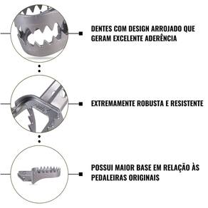 Produzido em aço inox sem soldas ou emendas, este par de pedaleiras é extremamente resistente e robusto, garantindo durabilidade mesmo nas condições mais adversas.