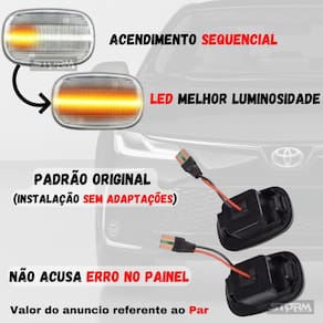 Par Pisca Seta Corolla Fielder Transparente ano 2005 a 2015 Cor: Cristal Descrição: Somos a Storm Parts, vendemos peças importadas e nacionais de alta qualidade e com , seu carro merece o melhor, ele merece as peças da Storm Parts. Compatível com: Toyota Hilux Sr Srv 2005 até 2015 Toyota Hilux Sw4 2005 até 2011 Toyota Corolla 2002 até 2008 Toyota Corolla Fielder 2002 até 2008 - Obs: compatível com as versões que possuem a seta no para-lama Especificações: Condição: novo com . Origem: Tipo: Pisca de direção lateral, acendimento sequencial Cor luz LED: âmbar Cor externa: Fume e Cristal escolher modelo desejado Potência: 3W Tensão: 12V Material: Caixa ABS + luzes LED Modelo: luz led Principais Perguntas: P. Necessita adaptação para instalar P. Acusa algum erro no painel do carro P. Anuncio é referente a uma unidade o par R. Anuncio referente ao par Lado direito + Lado esquerdo P. Qual a condição do produto R. Vendemos somente produtos novos e lacrados Apesar de fácil Instalação recomendamos a instalação por um profissional. Tenha tranquilidade de comprar com quem está disposto a oferecer o melhor atendimento, caso precise de ajuda antes ou após a compra, conte com a nossa equipe de atendimento para lhe ajudar. Estamos sempre a disposição para tirar qualquer duvida.