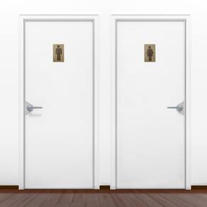 Par de placas para sinalização banheiro WC Dimensões: Altura 13cm Largura 8cm -Fixação: Vai com fita dupla face de alta fixação, não cai - GARANTIA: Garantimos que seu produto chegará livre de defeitos e conforme opção escolhida Trocamos seu produto em caso de quebra no transporte. Ean: 7908097603407