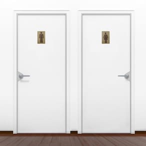 Par de placas para sinalização banheiro WC Dimensões: Altura 13cm Largura 8cm -Fixação: Vai com fita dupla face de alta fixação, não cai - GARANTIA: Garantimos que seu produto chegará livre de defeitos e conforme opção escolhida Trocamos seu produto em caso de quebra no transporte. Ean: 7908097603407