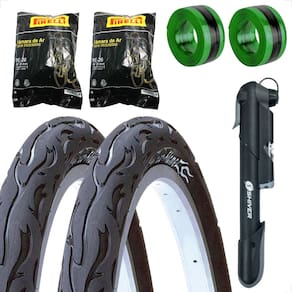 Itens inclusos: 2 unidades Pneu kenda Flame aro 26x2.125 2 unidades Camara de ar aro 26 Pirelli Bico grosso 33mm 2 unidades fita anti furo tectire 1 unidade mini bomba de ar Shiver portatil com manometro