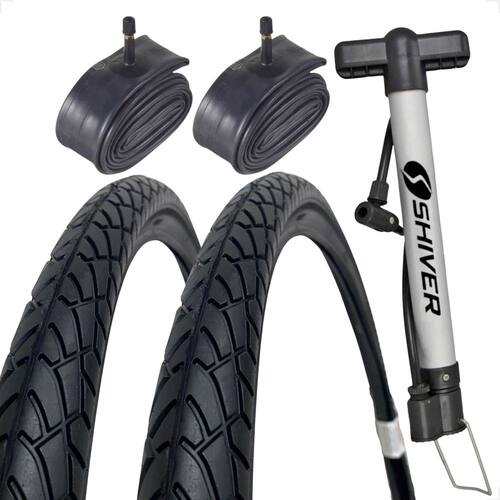 Itens inclusos: 2 unidades Pneu Shiver Rider 26x1.95 2 unidades camara de ar aro 26 33mm bico grosso 1 unidade bomba de ar manual 30 cm Shiver