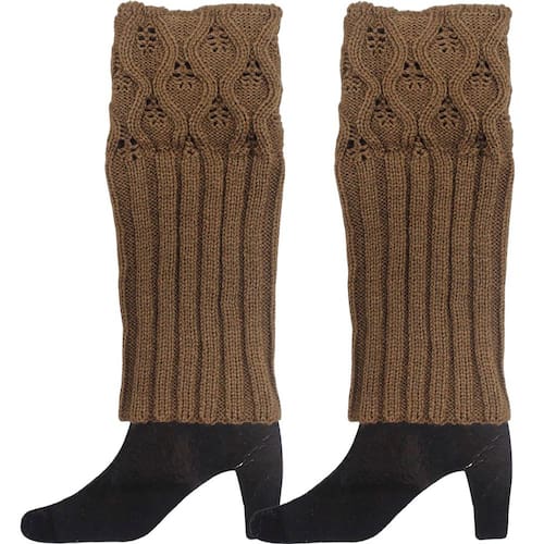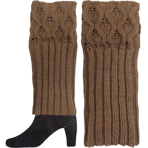 Par Polaina Adulta Feminina Meia Longa Malha Tricô Lã Marrom -