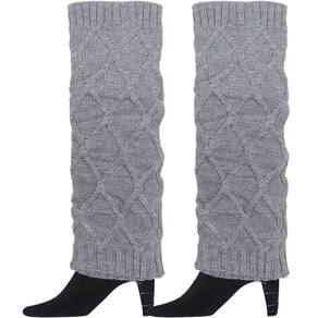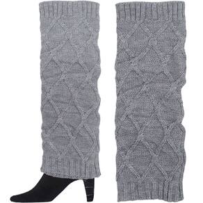 Par Polainas Feminina Adulta Meia Longa Malha Tricô Lã Cinza -