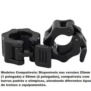 Par de Presilhas 25mm e 50mm para Barra, Anilha e Halter - Academia Garanta segurança e estabilidade nos seus treinos com o Par de Presilhas para barras de 25mm e 50mm. Indispensáveis para evitar o deslizamento das anilhas durante os exercícios, elas oferecem firmeza, praticidade e durabilidade para o seu treino em casa ou na academia. Características: Fixação Segura: Desenvolvidas para manter as anilhas firmemente presas à barra, evitando movimentos indesejados e garantindo treinos mais seguros e estáveis. Modelos Compatíveis: Disponíveis nas versões 25mm 1 polegada e 50mm 2 polegadas , compatíveis com barras padrão e olímpicas, atendendo diferentes tipos de treinos e equipamentos. Material Resistente: Fabricadas em ABS, oferecem excelente durabilidade e resistência ao uso frequente. Fácil Manuseio: Sistema de trava simples e eficiente, que permite colocar e remover rapidamente com uma única mão. Leves e Compactas: Fáceis de guardar e transportar, ideais para quem treina em casa ou leva seus próprios acessórios para a academia. Versatilidade de Uso: Pode ser Utilizado em barras de supino, halteres, barras W, barras olímpicas e demais equipamentos de musculação. Adicione mais segurança ao seu treino com o Par de Presilhas para Barras. Qualidade profissional para você treinar com confiança Especificações: Itens inclusos: 1 par de presilhas 2 unidades Tamanhos disponíveis: 25mm barra padrão ou 50mm barra olímpica Material: ABS Marca: Não Informado