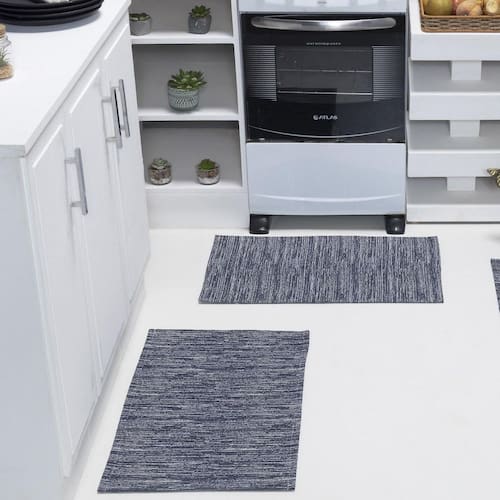 Par de Tapete Jacquard Antiderrapante Cozinha Banheiro Quarto Sala Estampa Geométrica Cor: Mesclado azul marinho Os tapetes são itens indispensáveis na decoração da casa, pois trazem toques de cor e personalidade, e também conforto térmico para os ambientes.
