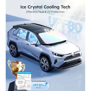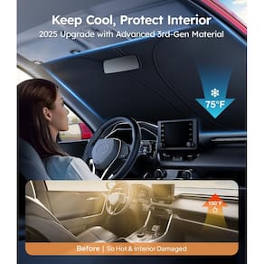 Wigoo Para-sol para para-brisas atualizado 2025 [100% de bloqueio solar, ajuste personalizado] Para-sol dobrável com isolamento térmico para janela frontal com bolsa de armazenamento, compatível com