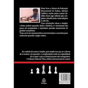 Título do livro : Para ensinar e aprender xadrez Autor : Caldeira, Adriano Idioma : Português Editora do livro : Ciranda Cultural Editora E Distribuidora Ltda. Capa do livro : Mole Ano de publicação : 2021 Quantidade de páginas : 192 Altura : 226 mm Largura : 155 mm Peso : 205 g Com páginas para colorir : Não Com realidade aumentada : Não Coautores : Adriano Caldeira Tradutores : Principis Gênero do livro : Literatura e ficção Subgêneros do livro : Literatura mundial Tipo de narração : EDUCAÇÃO Coleção do livro : Não se aplica Acessórios incluídos : N/A Idade mínima recomendada : 0 anos Lugar de publicação : Principis Data de publicação : 11-02-2021