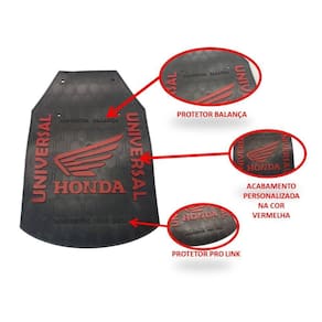 Parabarro Lameira Protetor Amortecedor Pro Link Balança Utilizado para proteger o sistema de amortecedor Pro Link contra projeção de lama, pedras e qualquer outro tipo de intempéries que possam danificar o sistema da balança e do amortecedor. Descrição: Material: Borracha Cor: Preto com detalhes em Vermelha Medidas:25x16cm Aplicação: - Universal Motos Honda Com Amortecedor Pro Link Marca: Rr Racing