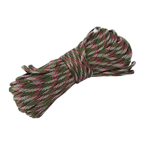 - O paracord 550 é composto por uma capa e sete cordinhas internas mais finas, cada uma delas é feita de dois fios individuais trançados. - Sua resistência é de 550 libras. - O paracord quando é separado em cordinhas é frequentemente utilizado em situações de sobrevivência, campings, em construções na selva, armadilhas, pendurar rede ou lona para uso como telhado, cadarço, corda de arcos, rede trançada de pesca, linha de costura, linha de pesca, fixar equipamentos ou acessórios a mochilas, fixar pontas de flecha para caça improvisadas nas hastes, situação em que comumente é usada em conjunto com alguma cola de origem vegetal ou animal.