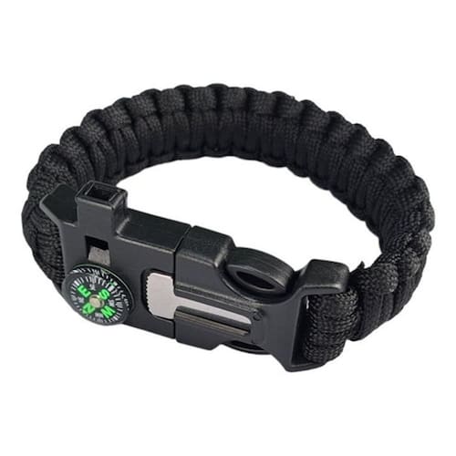 Pulseira de Sobrevivência e ideal Para quem gosta de camping, caminhadas, montanhismo. Seu Cabo Paracord de 3,8 M suporta ate 550 libras, cabo é acondicionado na fivela formando uma pulseira em malha compacta e fácil de transportar Caracteristicas: