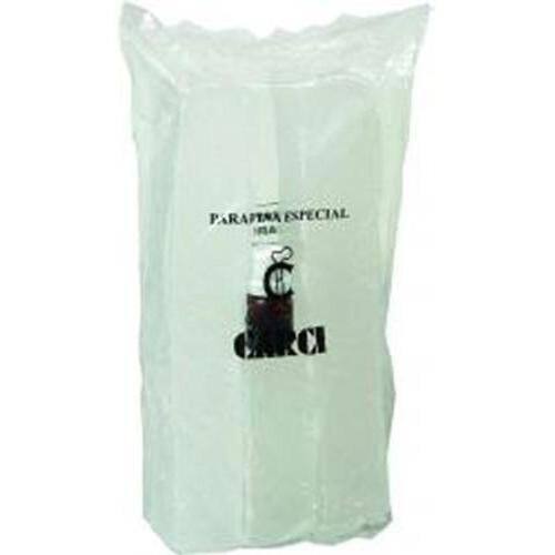 A Parafina Especial Em Pó Carci é embalada em um saco plástico, garantindo praticidade e facilidade no transporte e armazenamento do produto.